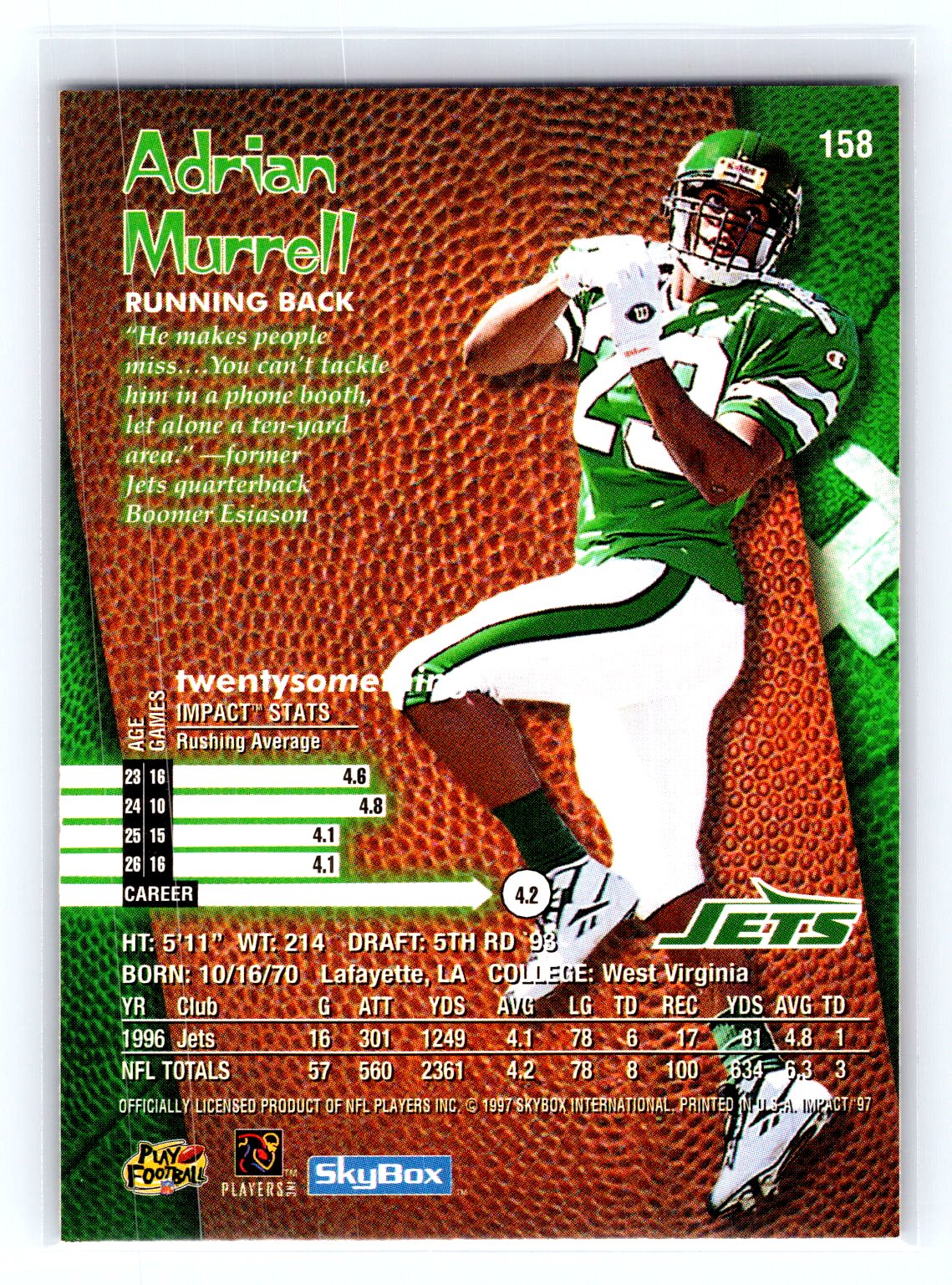 This is a really nice example of a 1997 SkyBox Impact #158 Adrian Murrell .