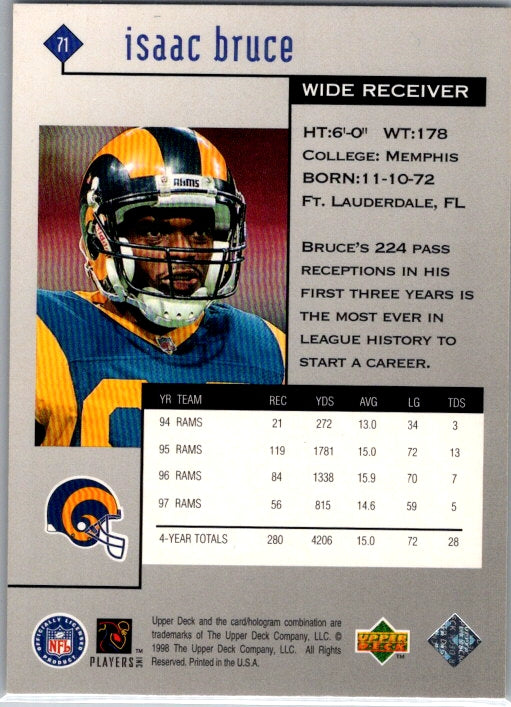 In 1998 Isaac Bruce played for the St. Louis Rams.