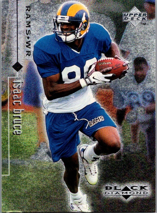 This is a really nice example of a 1998 Upper Deck Black Diamond Rookie Edition #71 Isaac Bruce .
