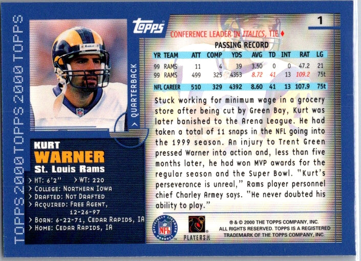2000 Topps #1 Kurt Warner Topps Collection