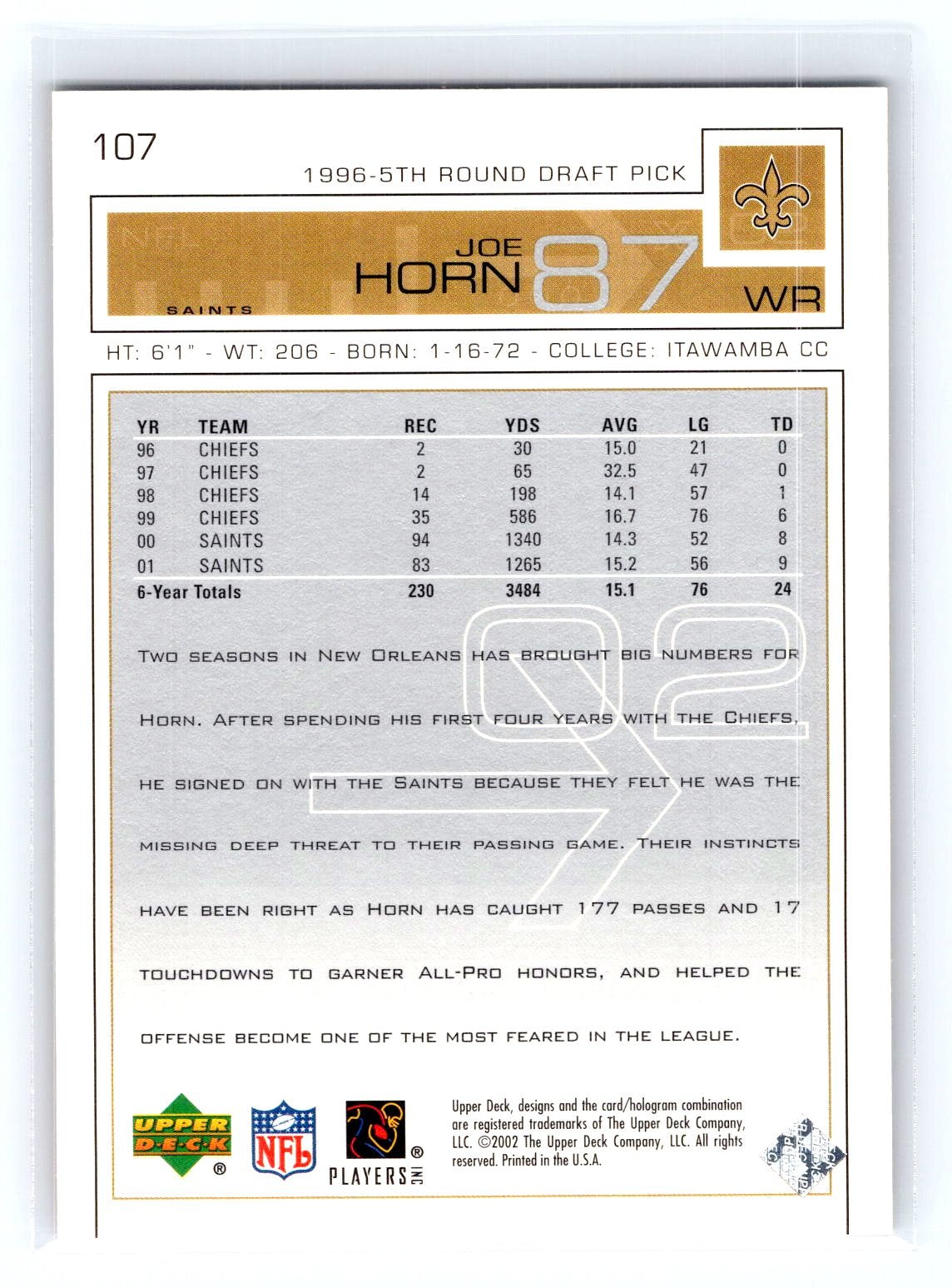 2002 Upper Deck #107 Joe Horn