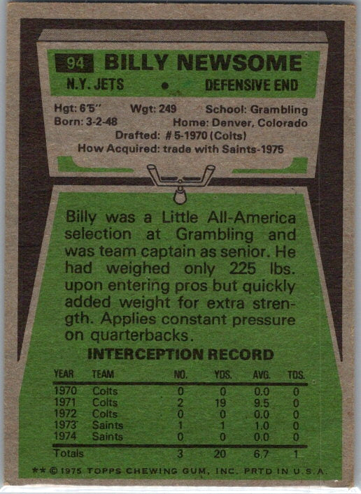 This is a really nice example of a 1975 Topps #94 Billy Newsome .