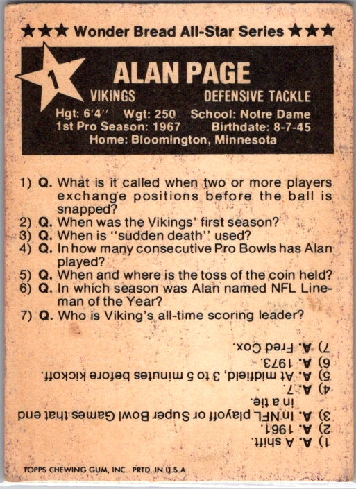 1975 Wonder Bread #1 Alan Page