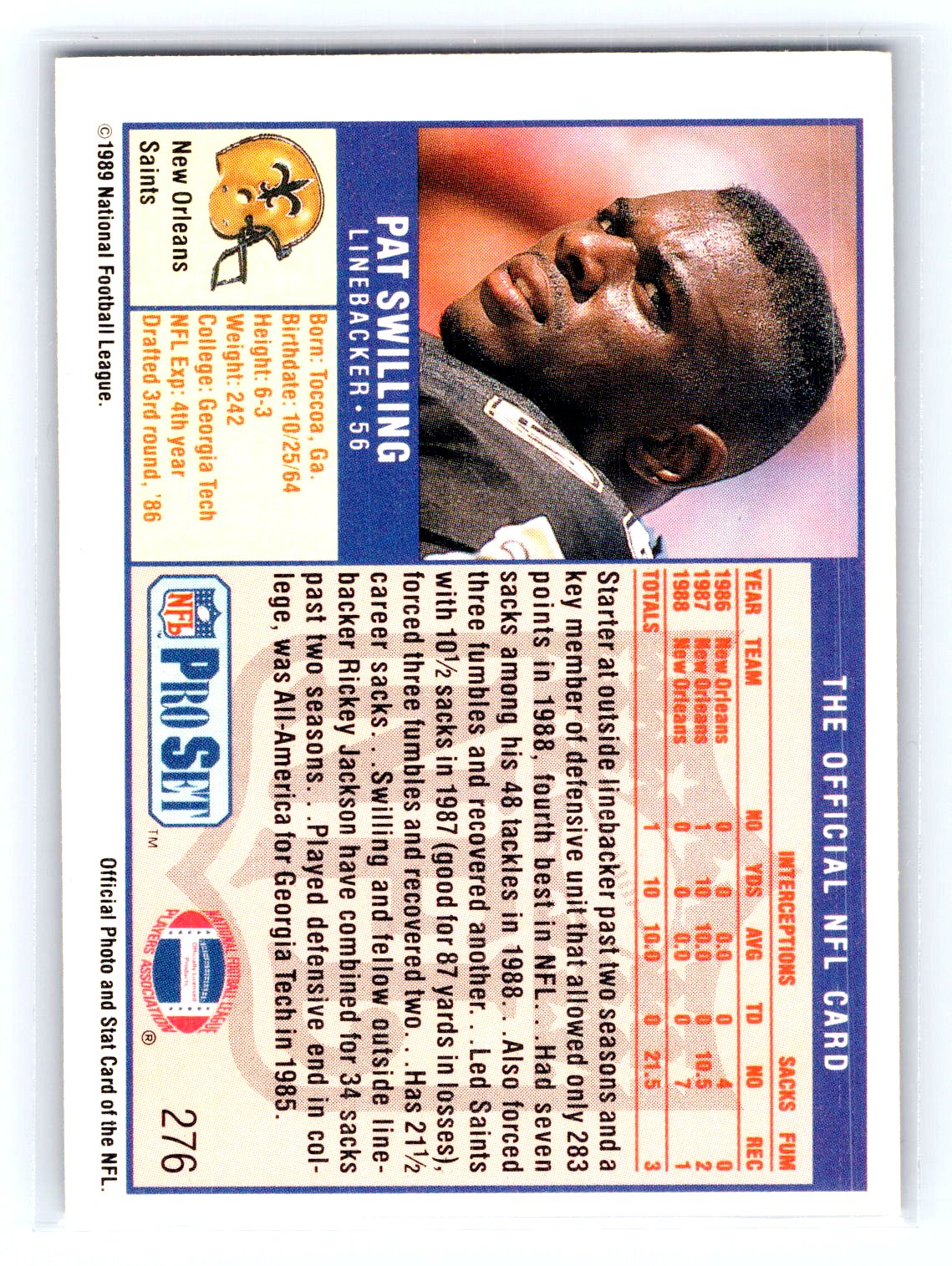 This is a really nice example of a 1989 Pro Set #276 Pat Swilling .