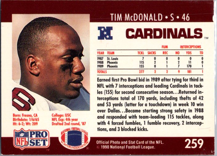 1990 Pro Set #259 Tim McDonald