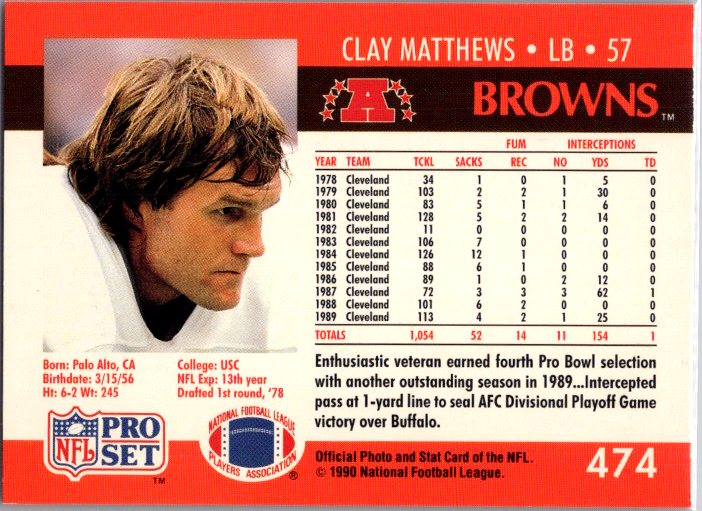 In 1990 Clay Matthews played for the Cleveland Browns.