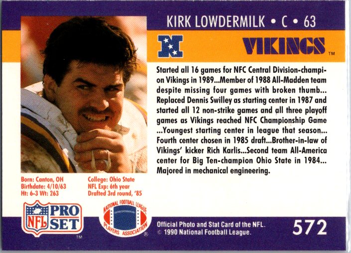 1990 Pro Set #572 Kirk Lowdermilk