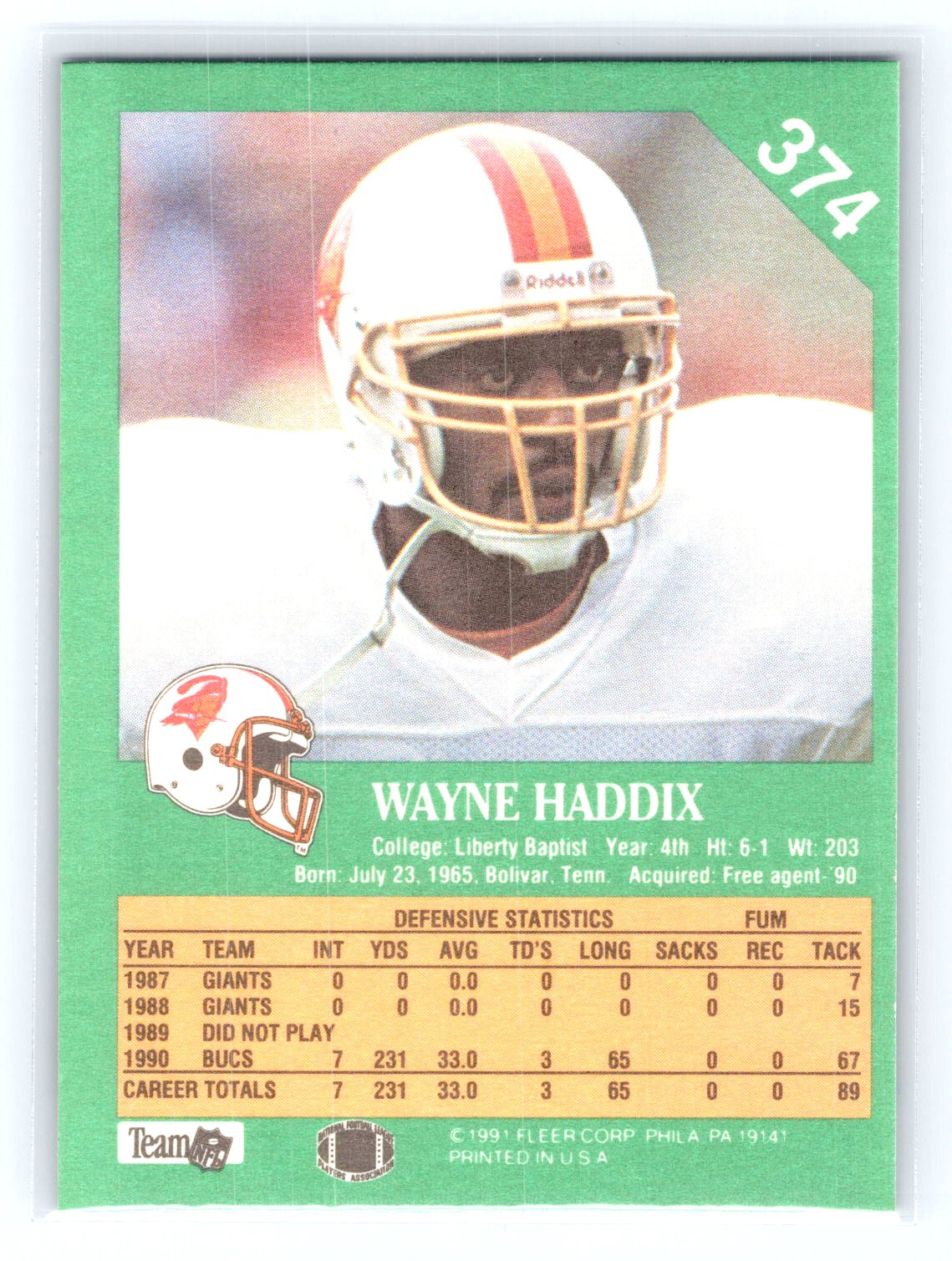This is a really nice example of a 1991 Fleer #374 Wayne Haddix .