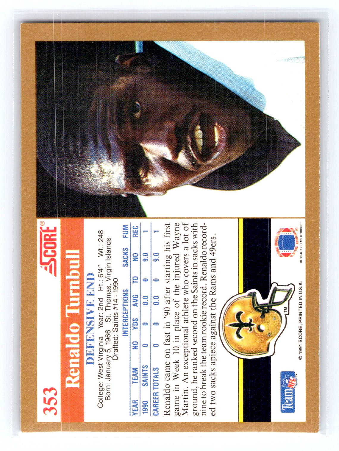 This is a really nice example of a 1991 Score #353 Renaldo Turnbull .