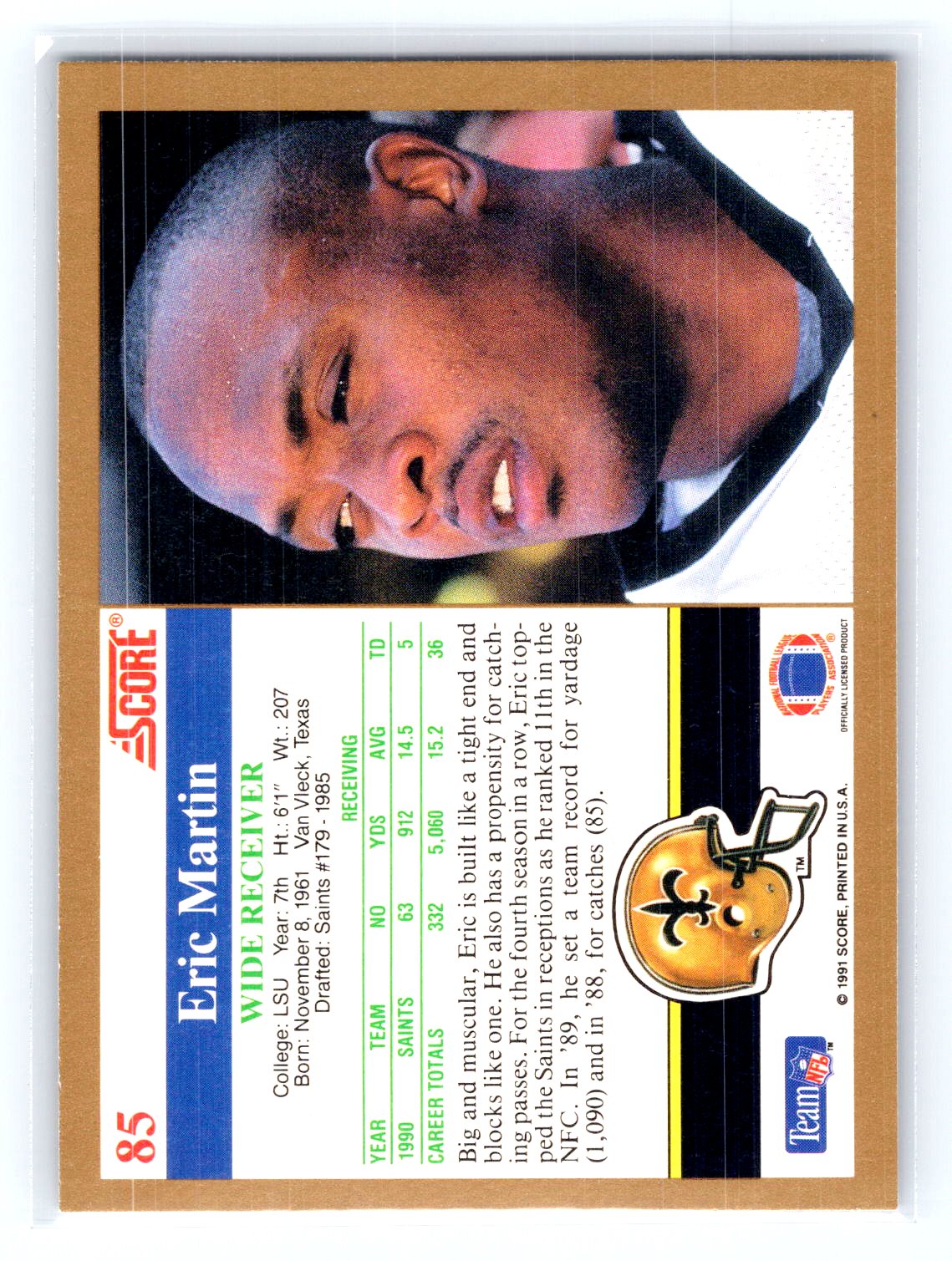 This is a really nice example of a 1991 Score #85 Eric Martin .
