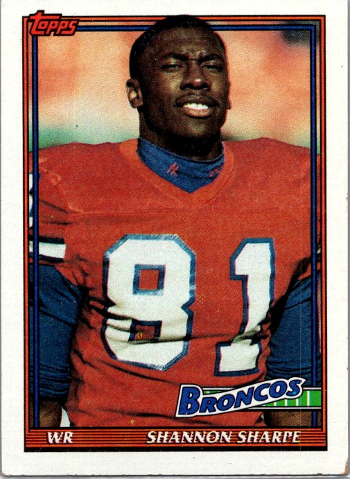 This is a really nice example of a 1991 Topps #563 Shannon Sharpe .