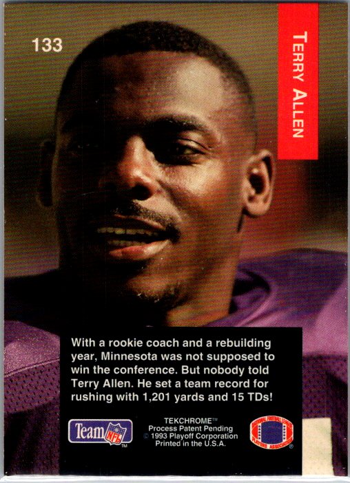 This is a really nice example of a 1993 Playoff #133 Terry Allen .