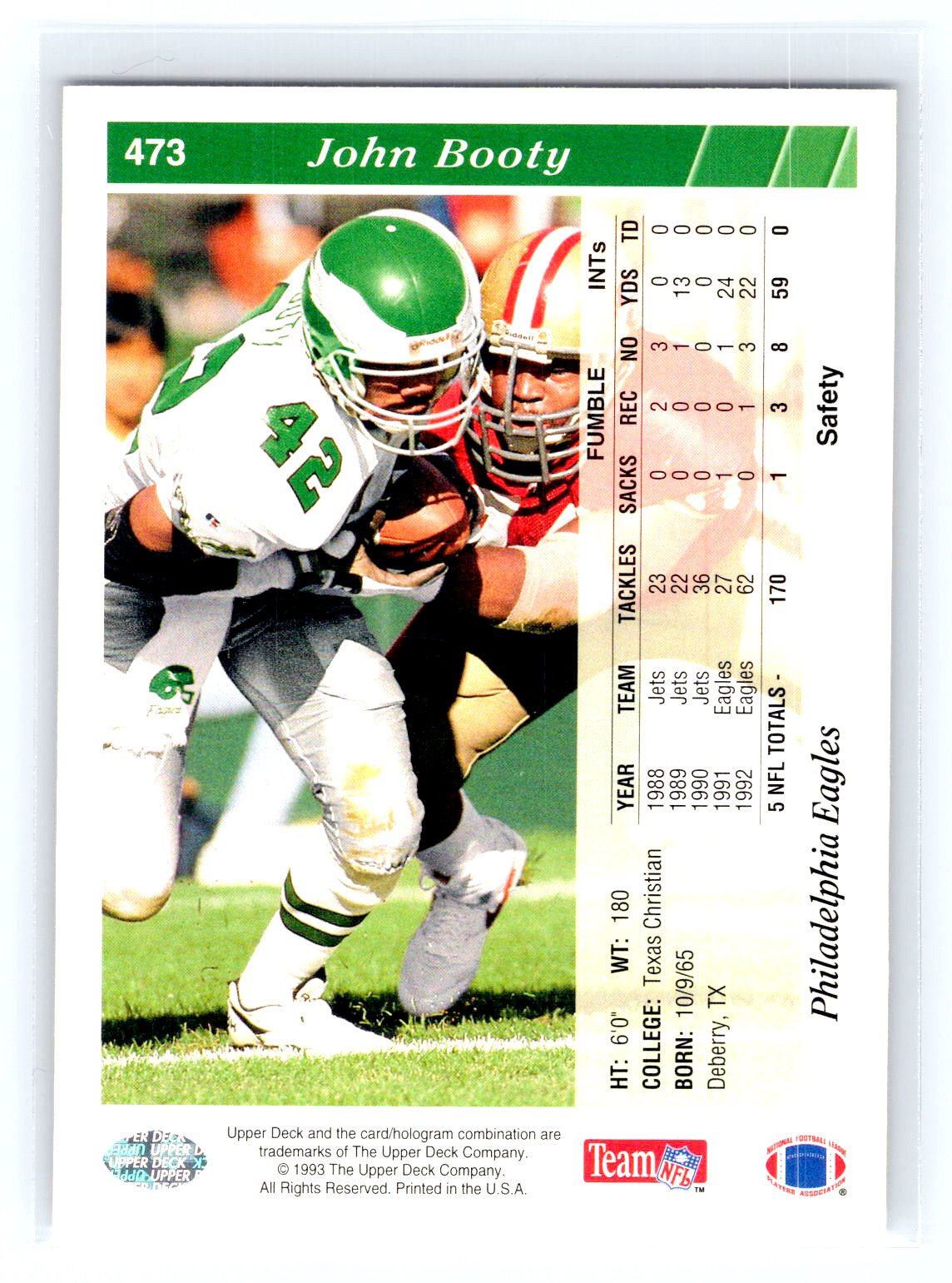 This is a really nice example of a 1993 Upper Deck #473 John Booty .