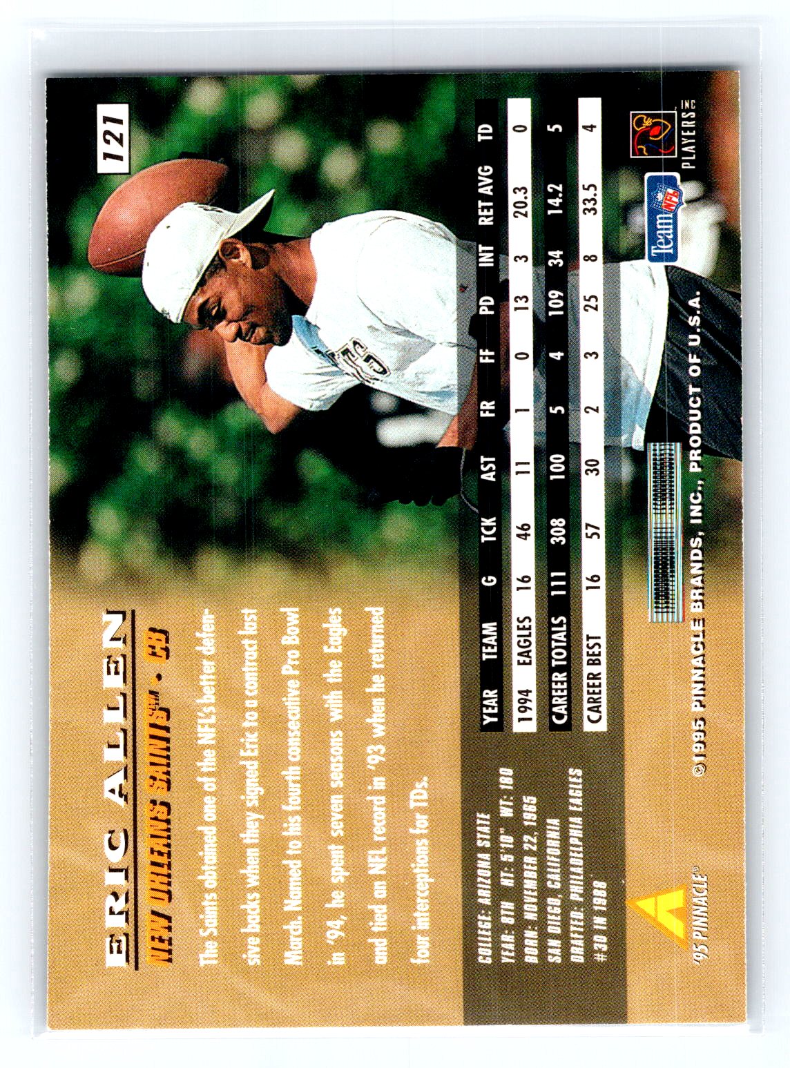 This is a really nice example of a 1995 Pinnacle #121 Eric Allen .