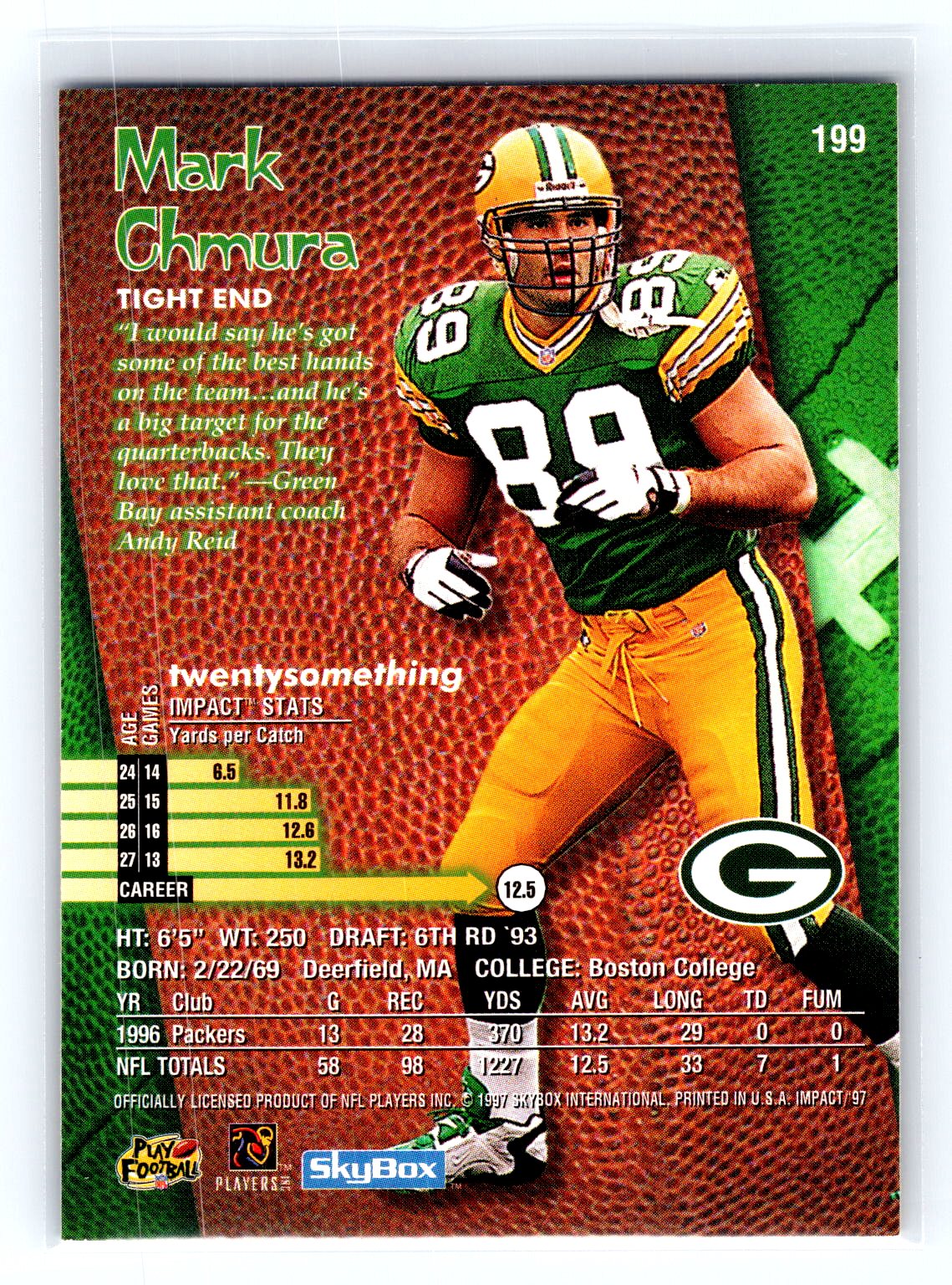 In 1997 Mark Chmura played for the Green Bay Packers.