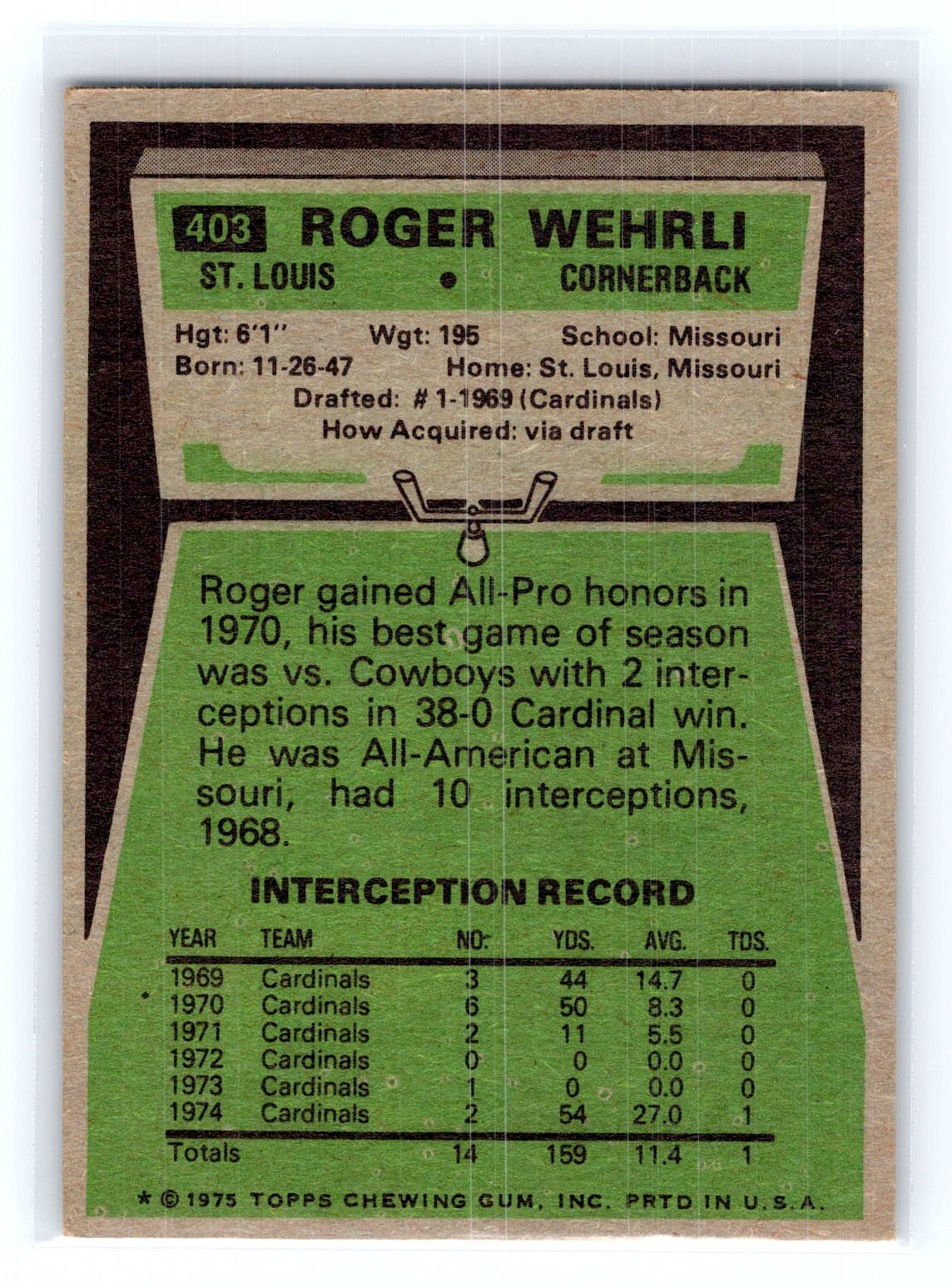 This is a really nice example of a 1975 Topps #403 Roger Wehrli .
