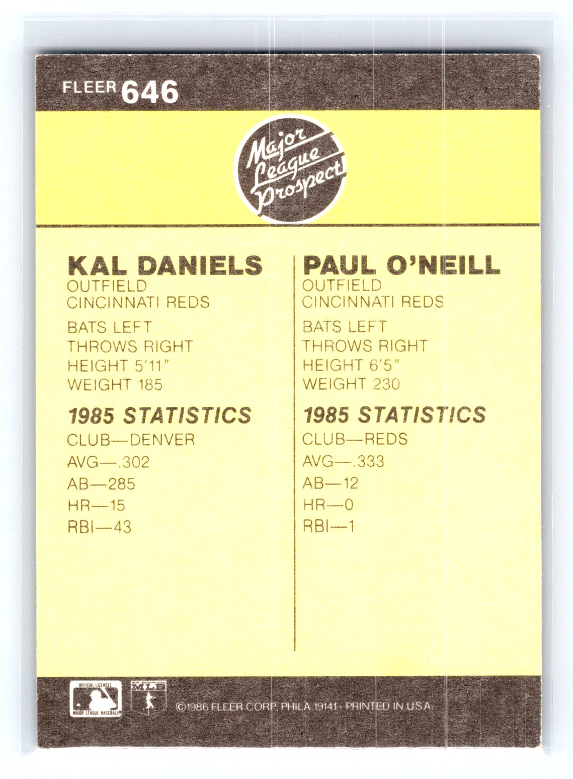 This is a really nice example of a 1986 Fleer #646 Kal Daniels / Paul O'Neill .