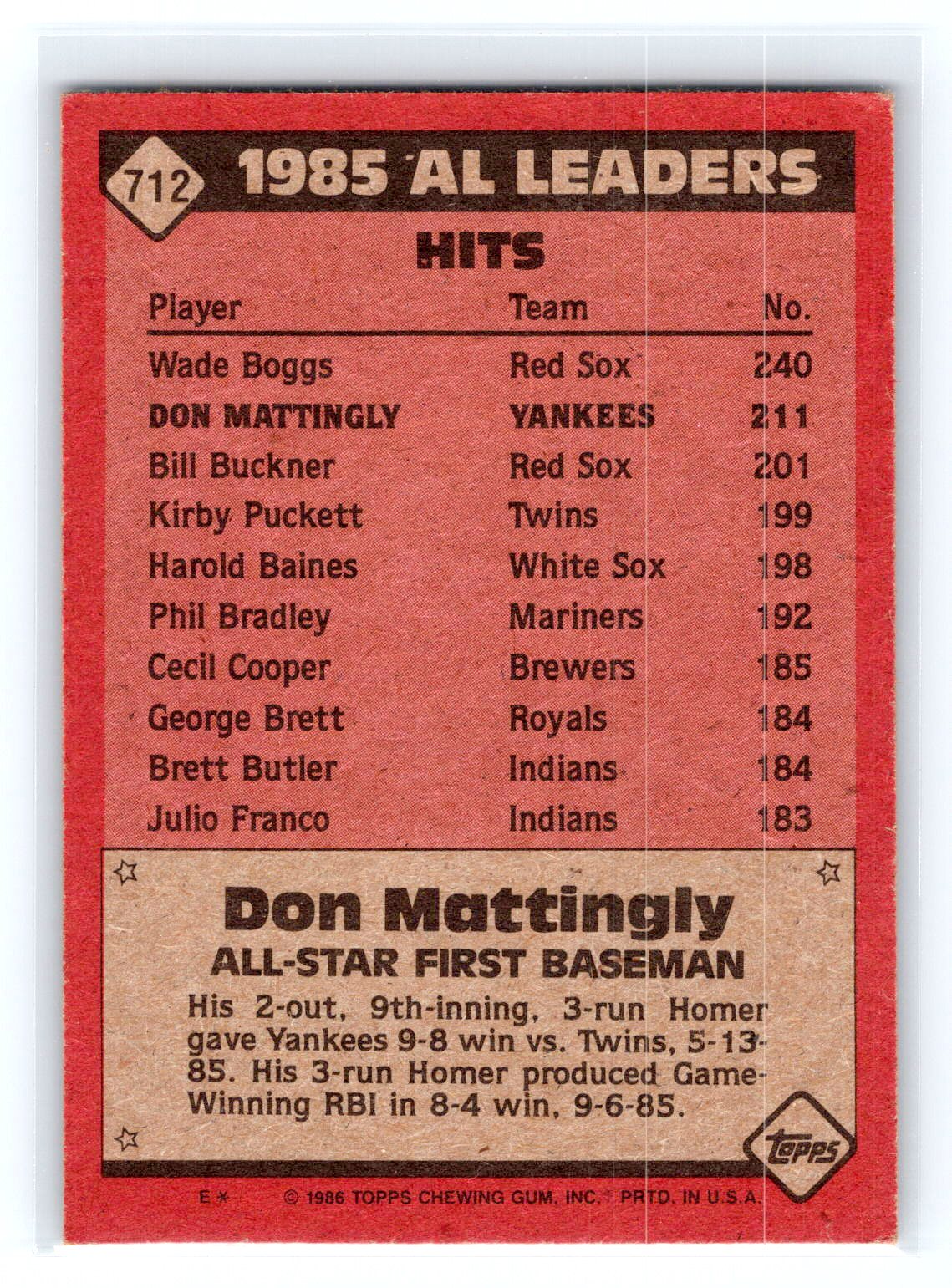 This is a really nice example of a 1986 Topps #712 Don Mattingly .