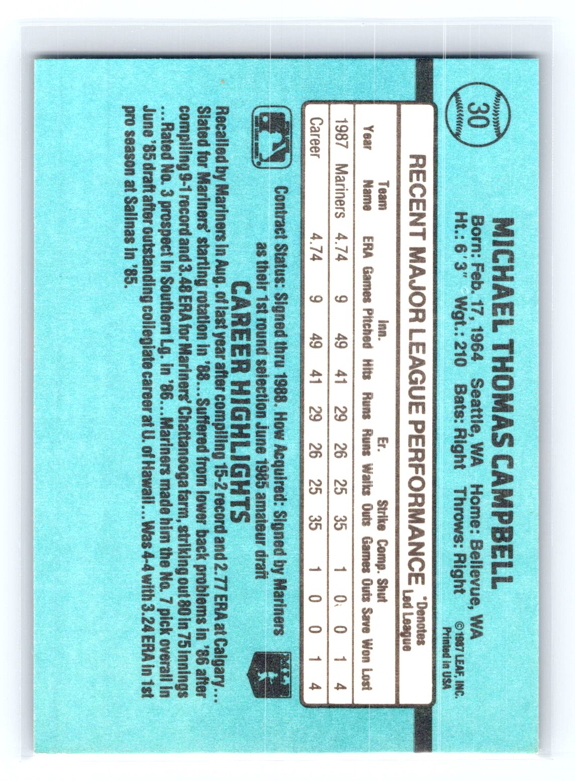 This is a really nice example of a 1988 Donruss #30c Mike Campbell .