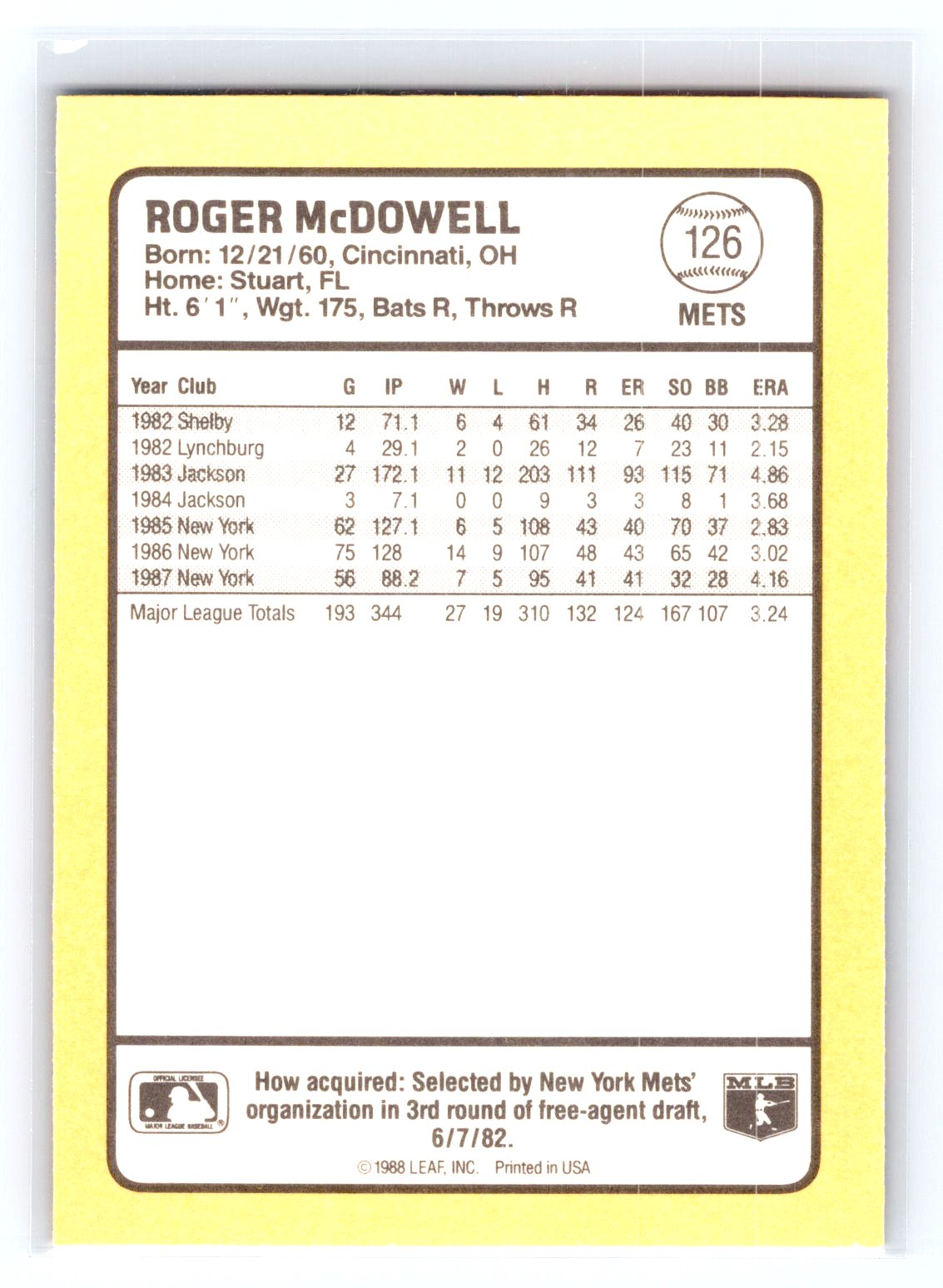 This is a really nice example of a 1988 Donruss Baseball's Best #126 Roger McDowell .