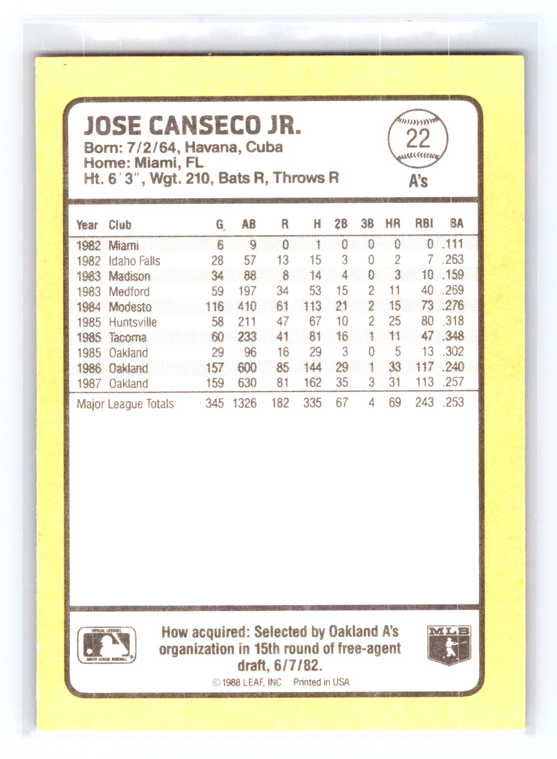 1988 Donruss Baseball's Best #22 Jose Canseco