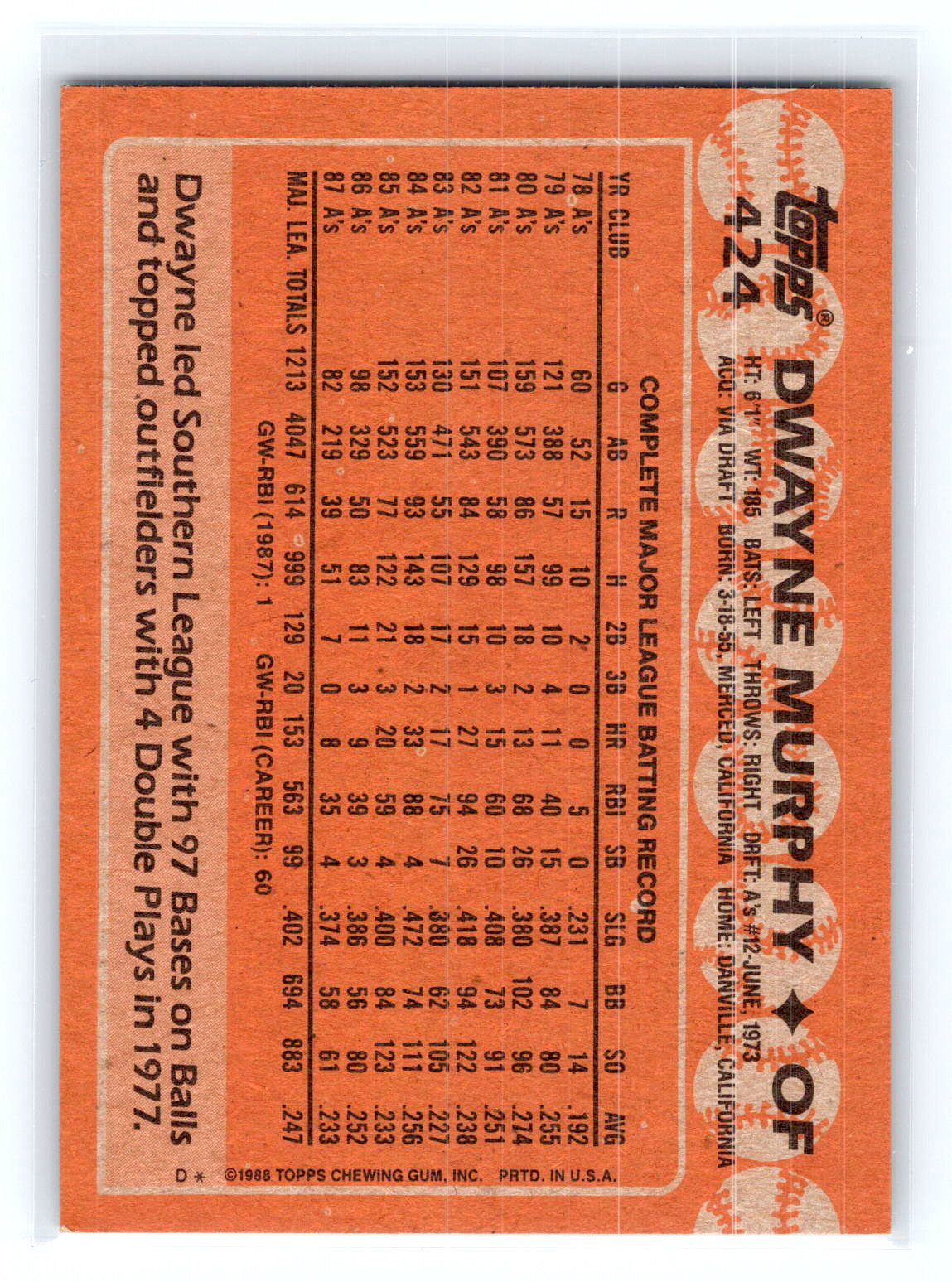 In 1988 Dwayne Murphy played for the Oakland Athletics.