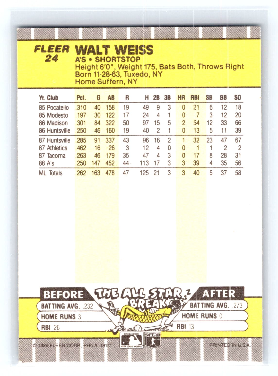 This is a really nice example of a 1989 Fleer #24 Walt Weiss .