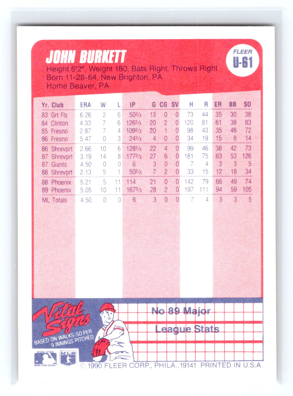 This is a really nice example of a 1990 Fleer Update #U-61 John Burkett .