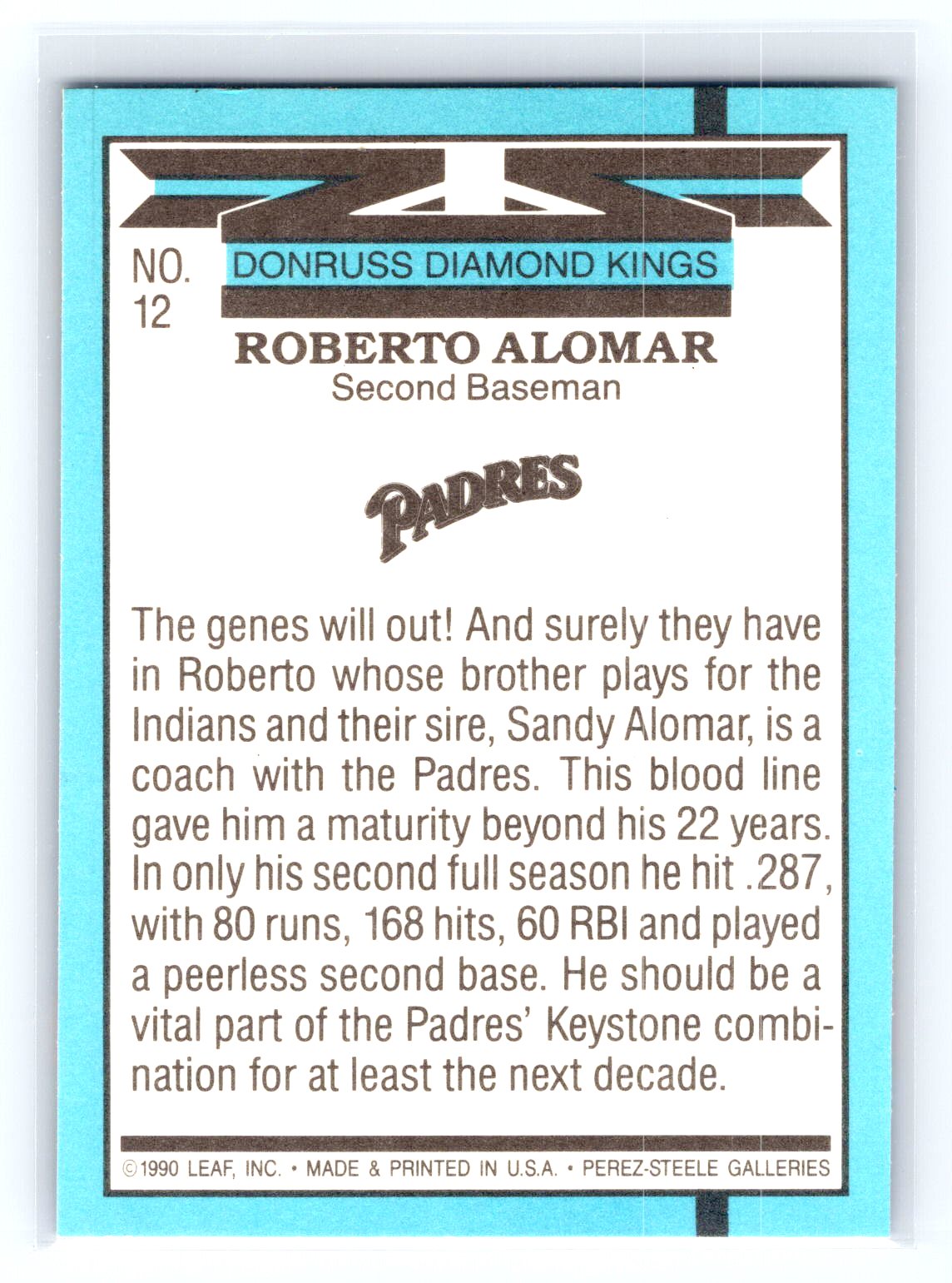 This is a really nice example of a 1991 Donruss #12b Roberto Alomar .
