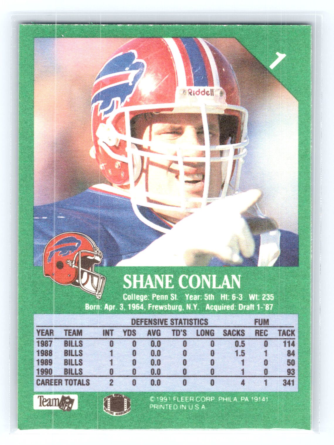 This is a really nice example of a 1991 Fleer #1 Shane Conlan .