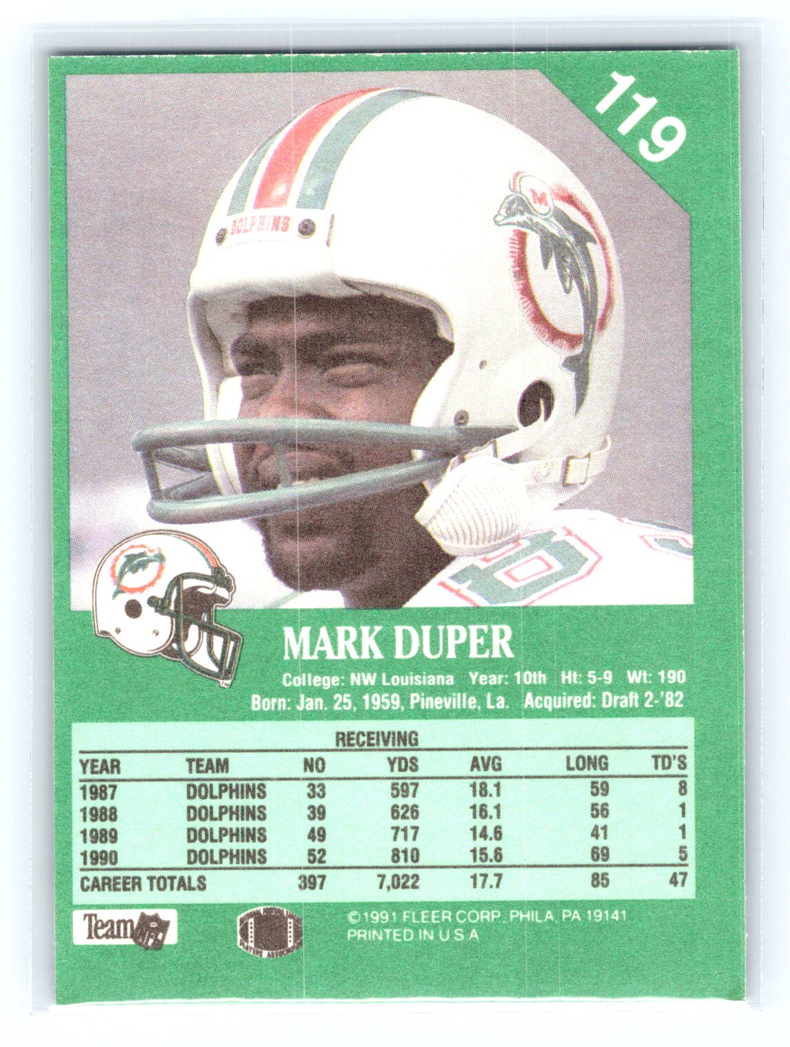 This is a really nice example of a 1991 Fleer #119 Mark Duper .