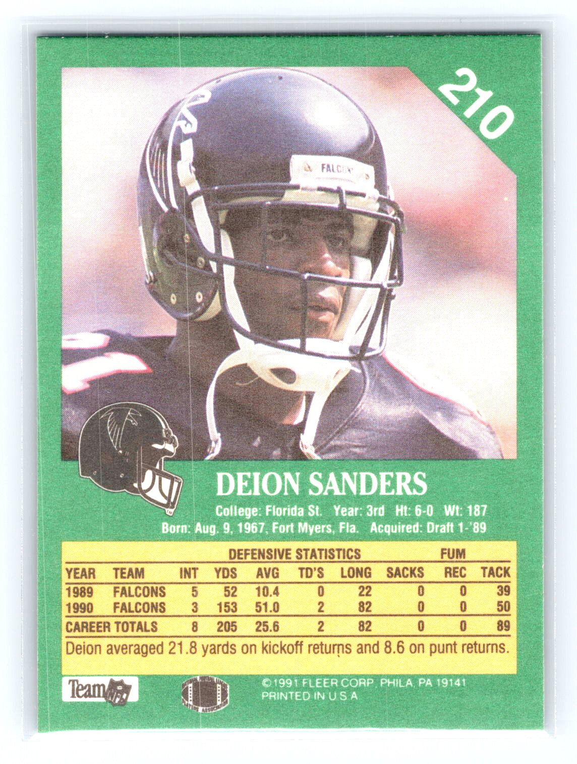 This is a really nice example of a 1991 Fleer #210 Deion Sanders .