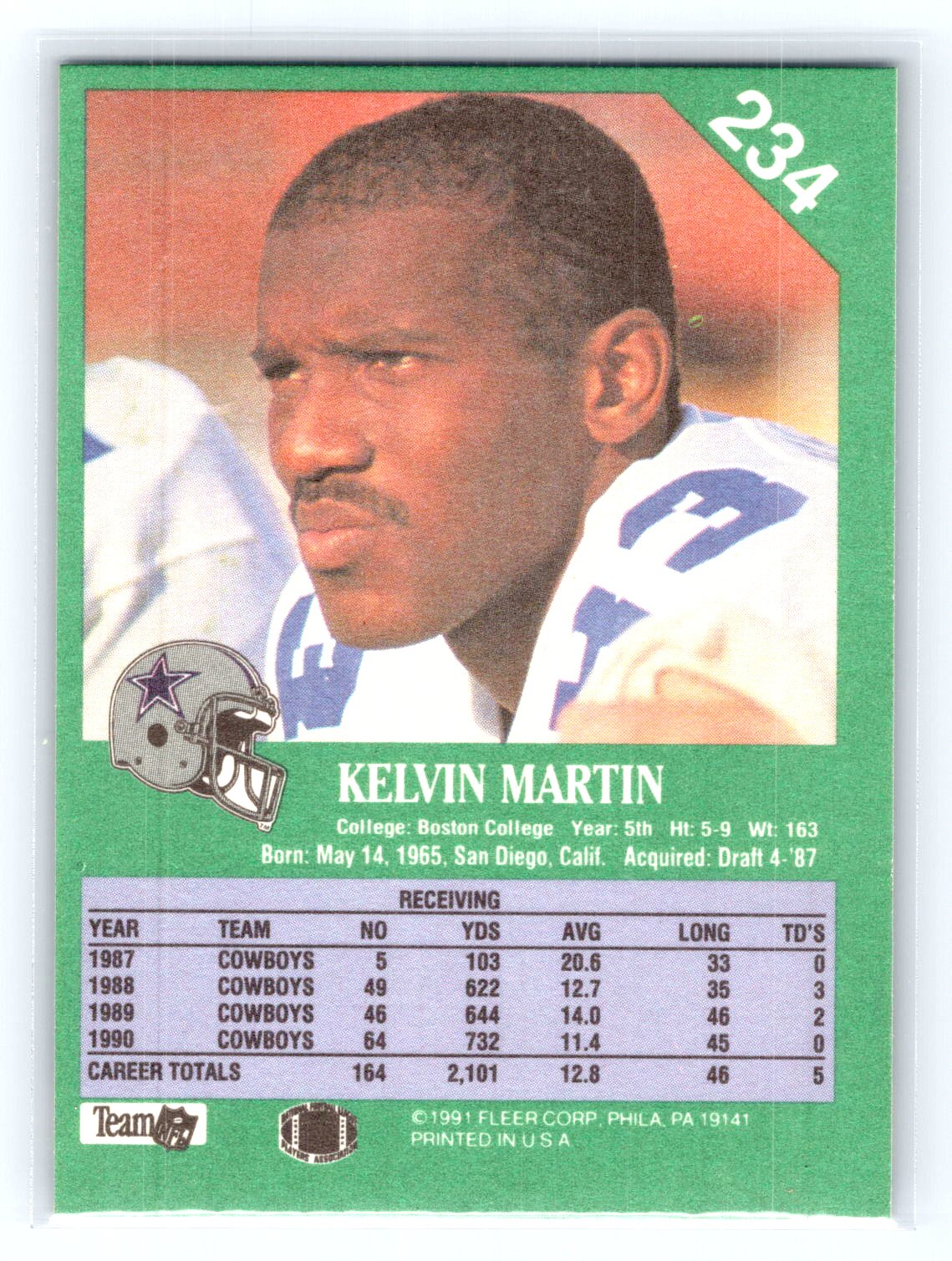 In 1991 Kelvin Martin played for the Dallas Cowboys.