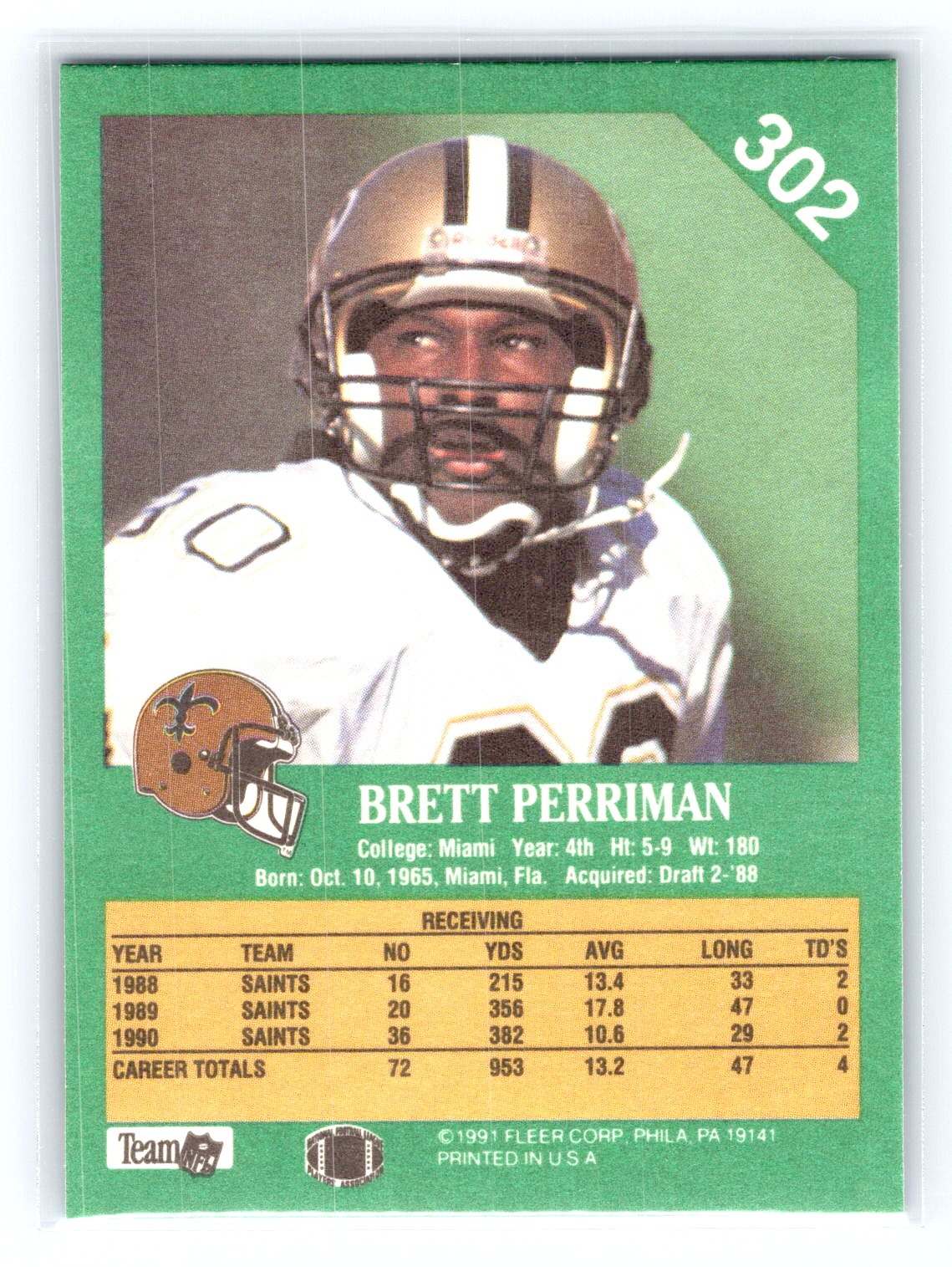 This is a really nice example of a 1991 Fleer #302 Brett Perriman .