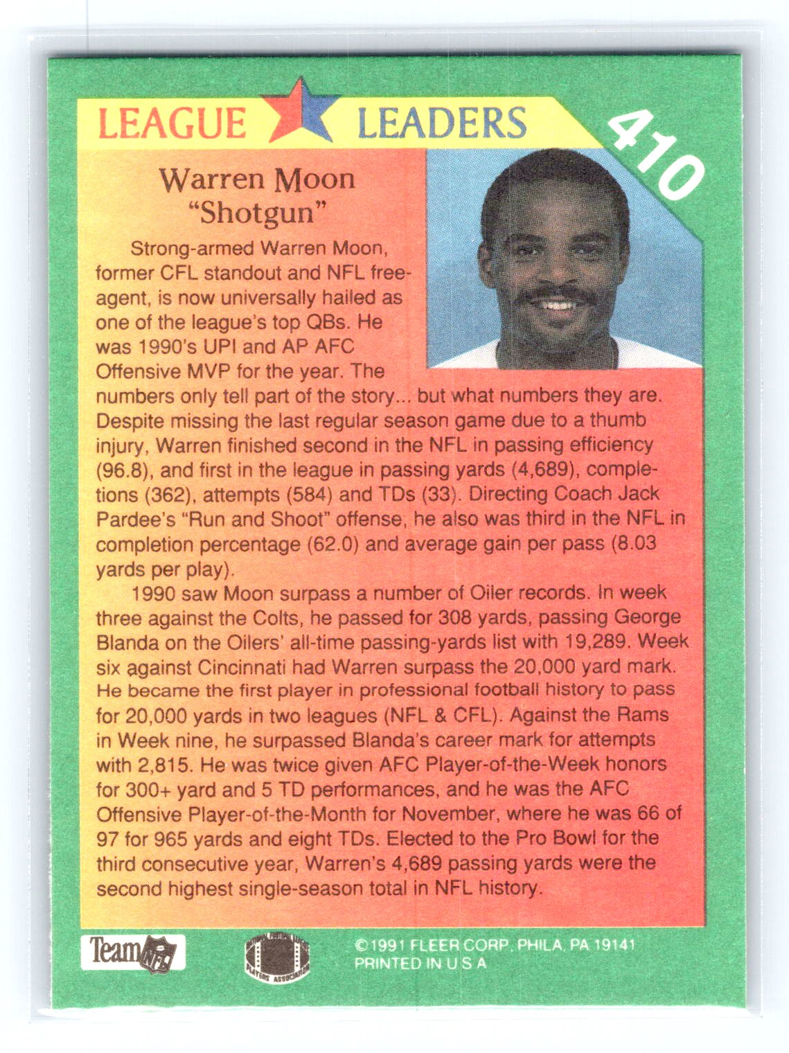 This is a really nice example of a 1991 Fleer #410 Warren Moon .