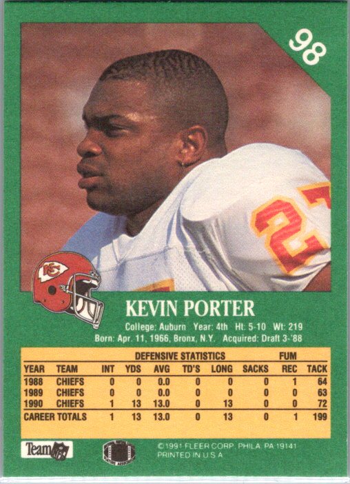 In 1991 Kevin Porter played for the Kansas City Chiefs.