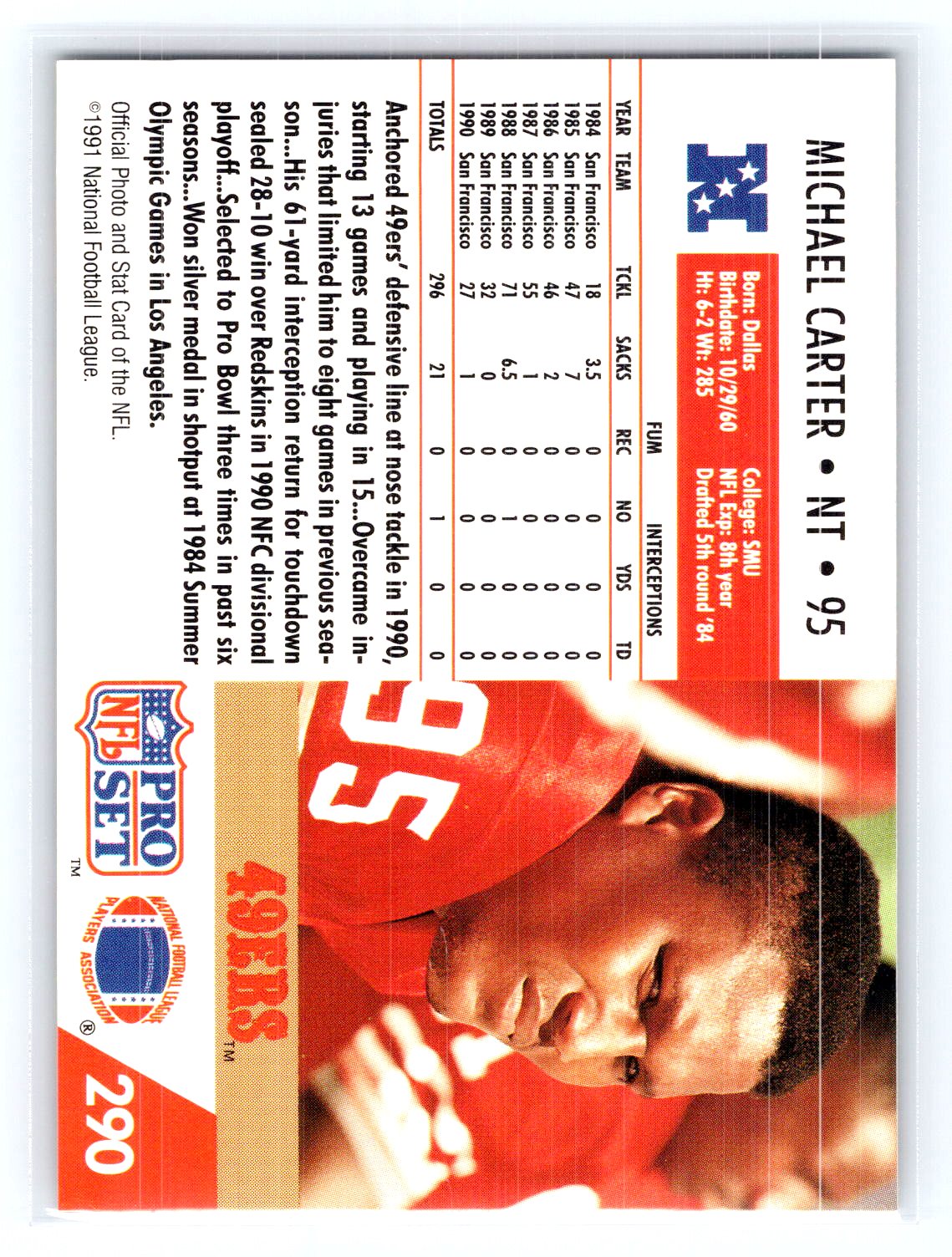 This is a really nice example of a 1991 Pro Set #290 Michael Carter .