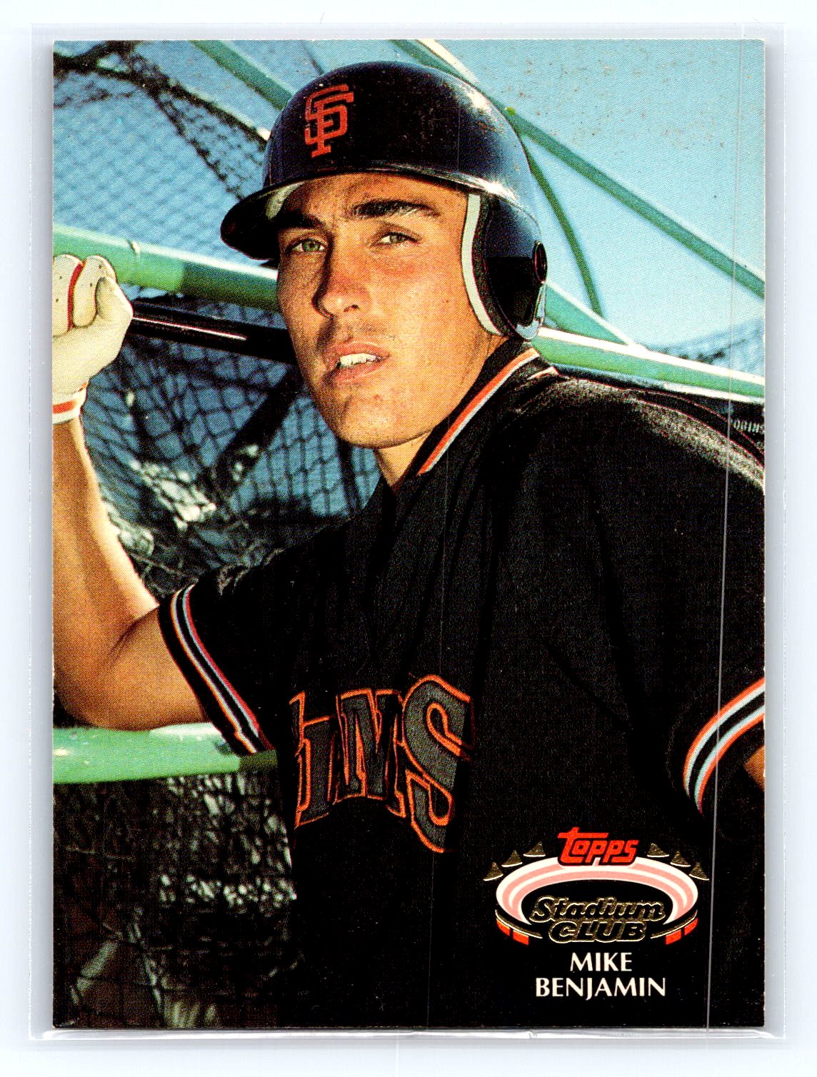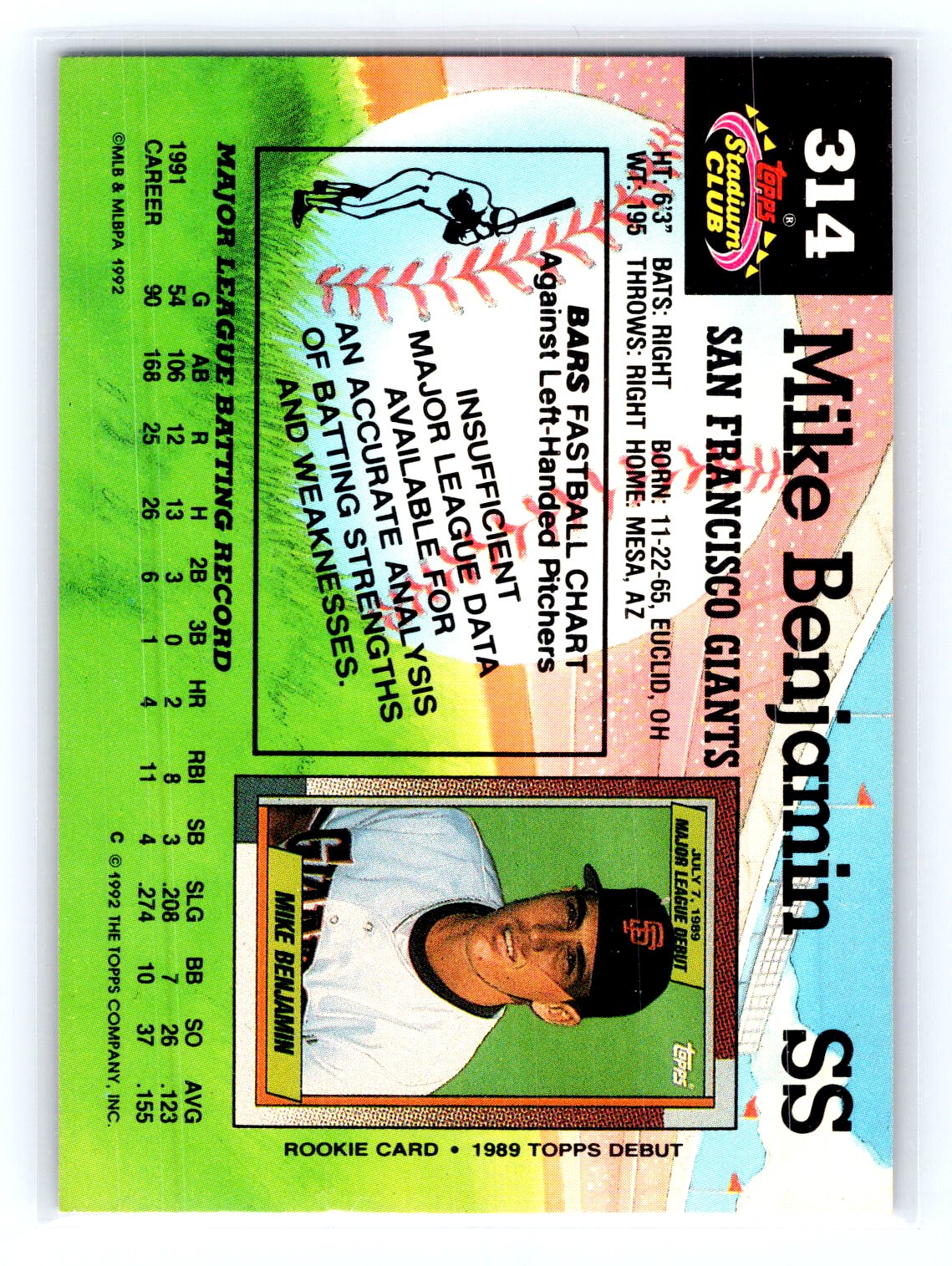 This is a really nice example of a 1992 Stadium Club #314 Mike Benjamin .