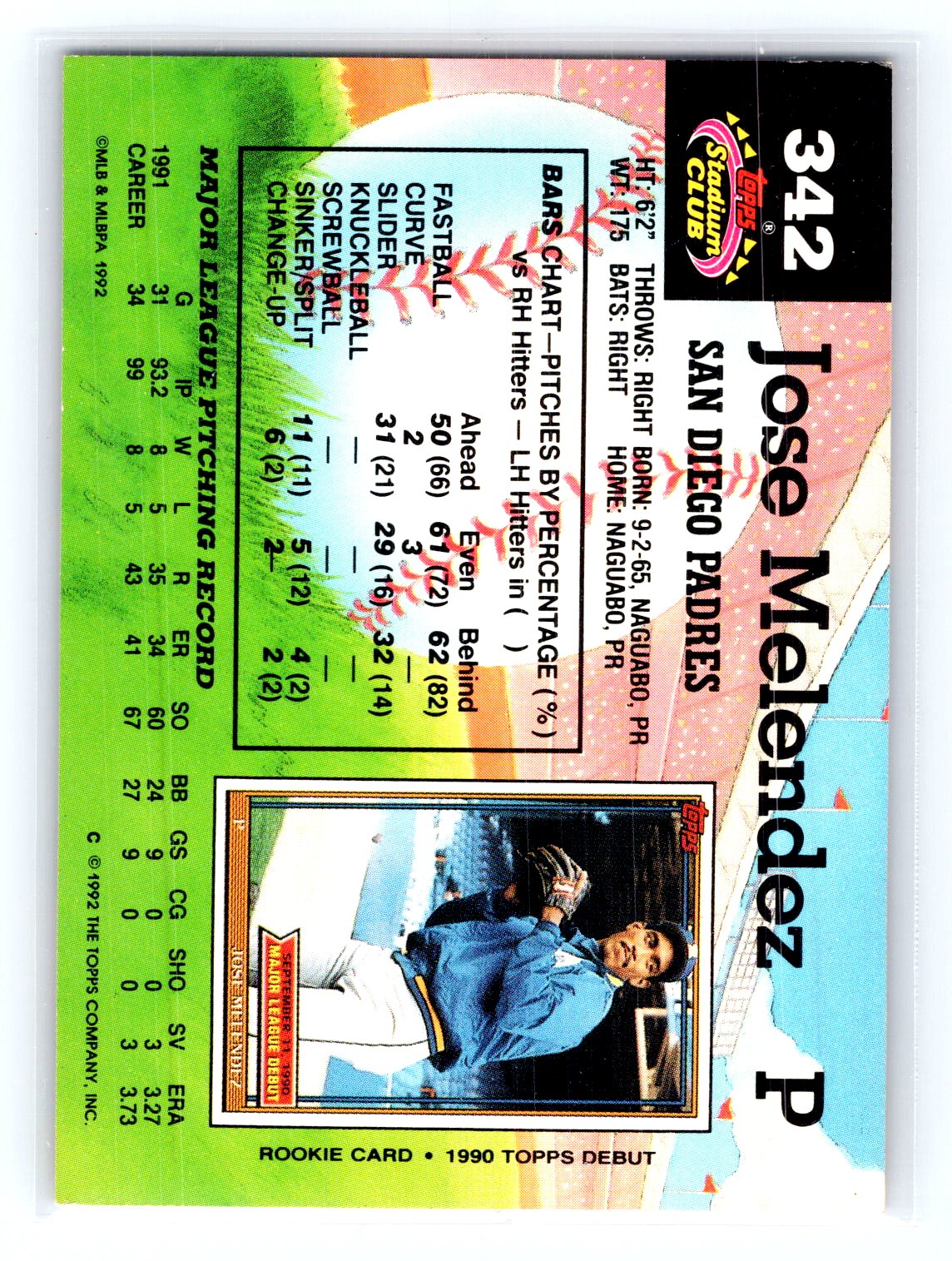 This is a really nice example of a 1992 Stadium Club #342 Jose Melendez .
