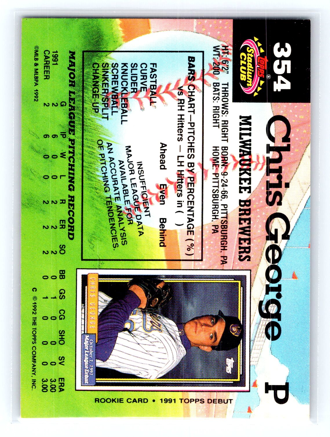 This is a really nice example of a 1992 Stadium Club #354b Chris George .