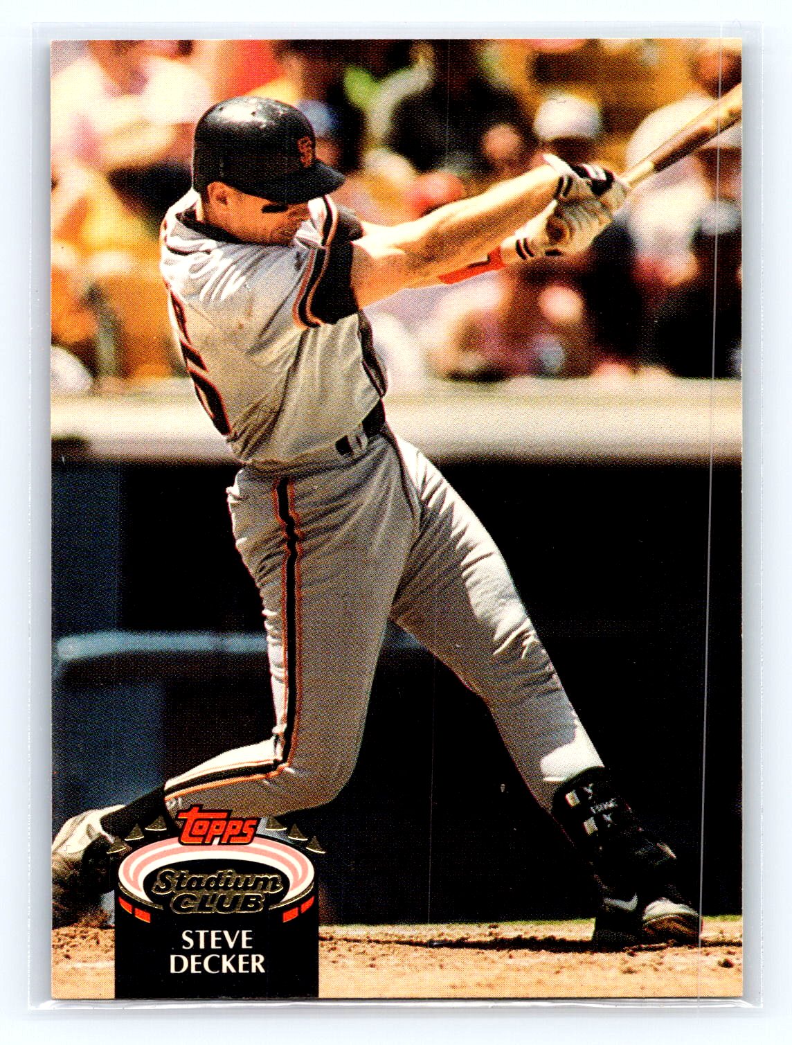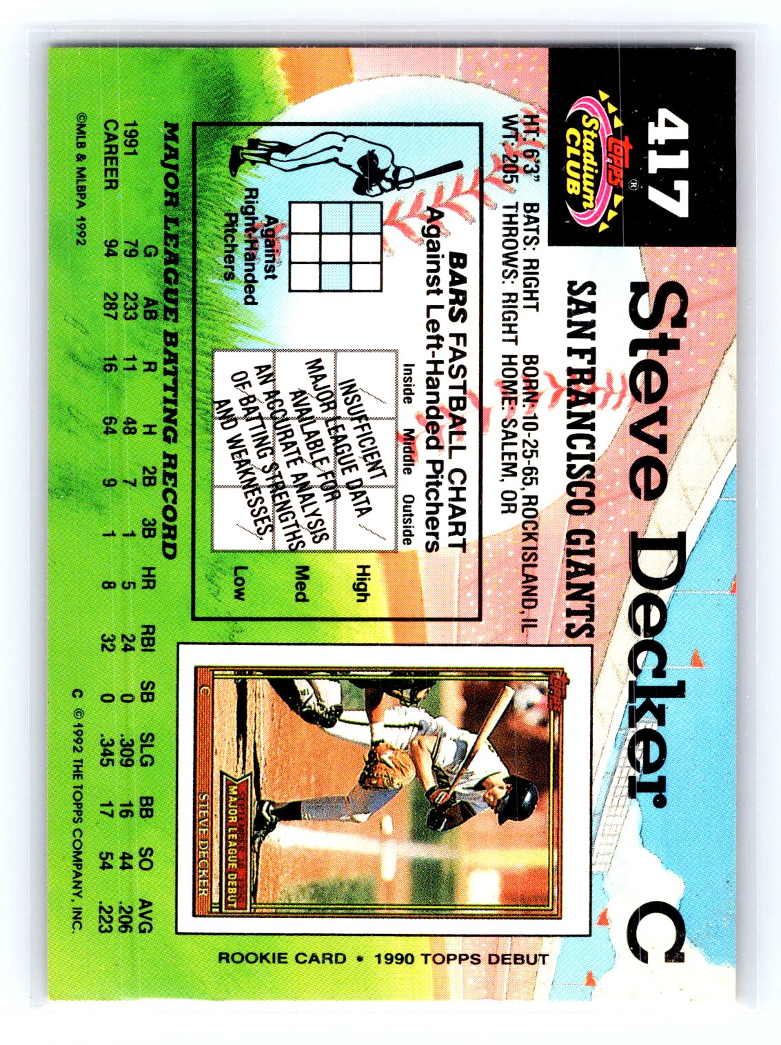This is a really nice example of a 1992 Stadium Club #417 Steve Decker .