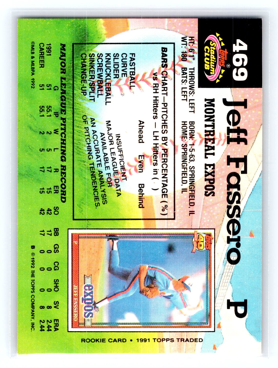 This is a really nice example of a 1992 Stadium Club #469 Jeff Fassero .