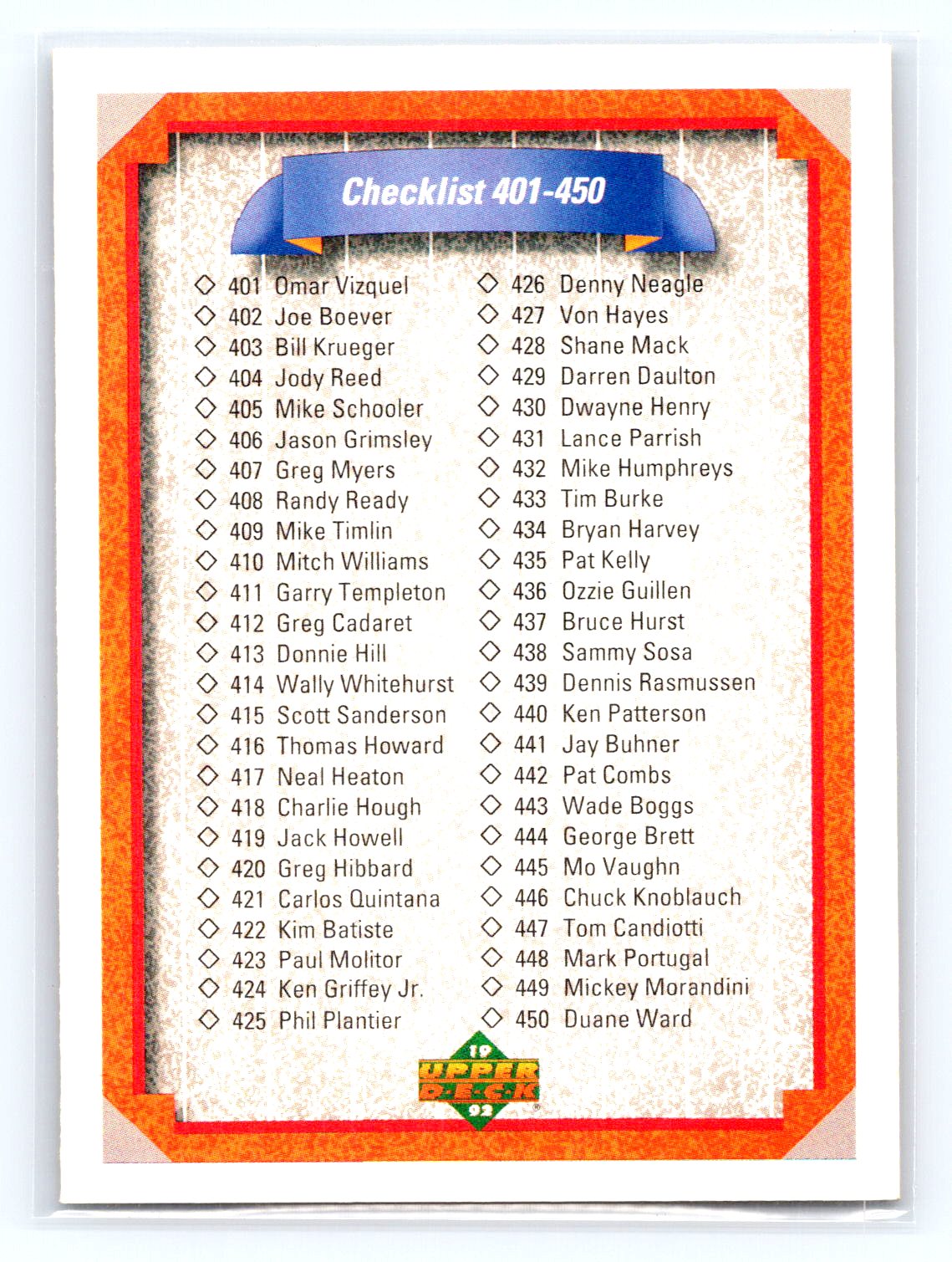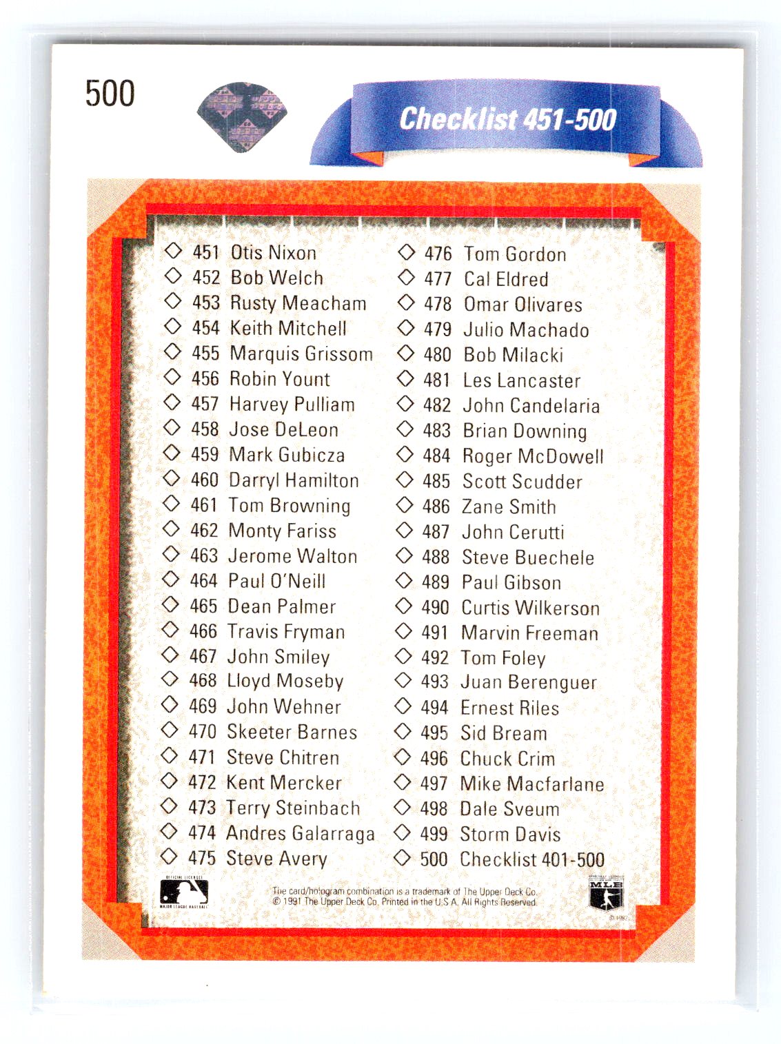 This is a really nice example of a 1992 Upper Deck #500 Checklist: 401-500 .