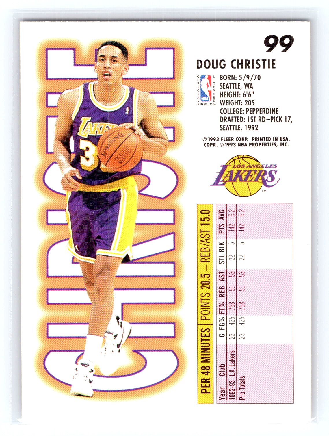 In 1993 Doug Christie played for the Los Angeles Lakers.