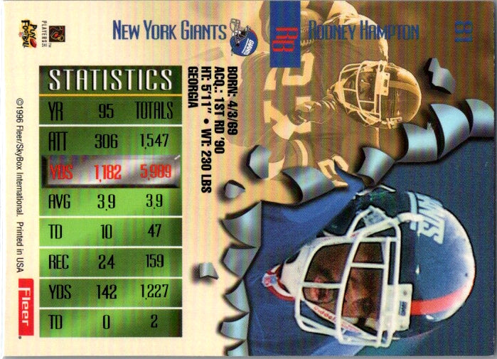 In 1996 Rodney Hampton played for the New York Giants.