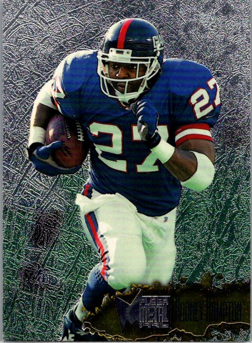 This is a really nice example of a 1996 Fleer Metal #81 Rodney Hampton .