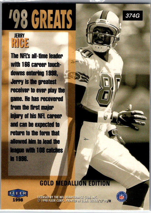 This is a really nice example of a 1998 Ultra #374 Jerry Rice .