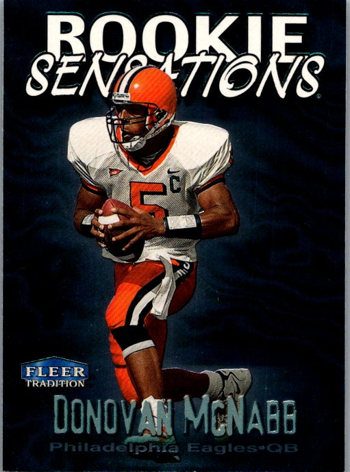 This is a really nice example of a 1999 Fleer Tradition #16 RS Donovan McNabb Rookie Sensations.