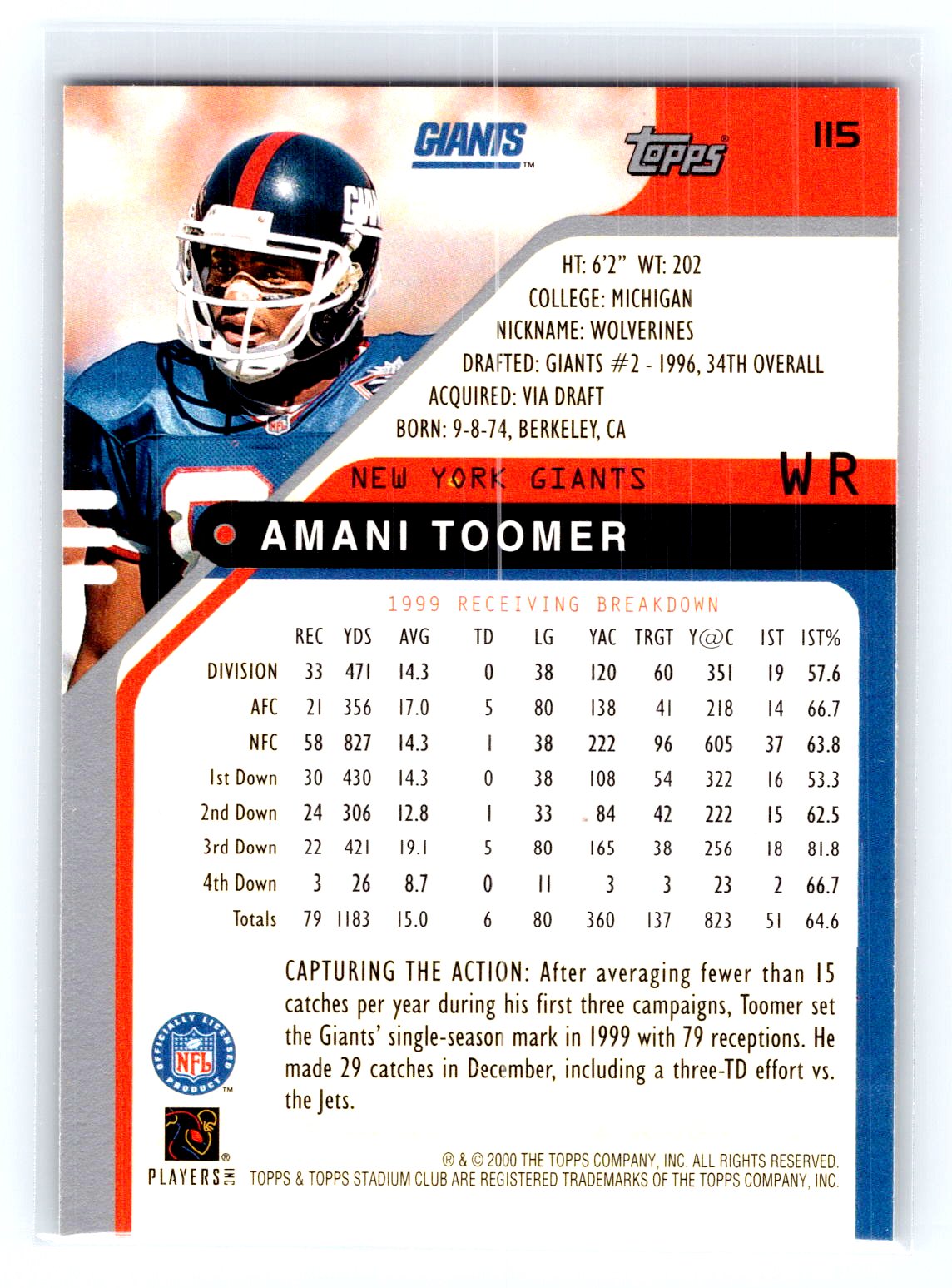 This is a really nice example of a 2000 Stadium Club #115 Amani Toomer .