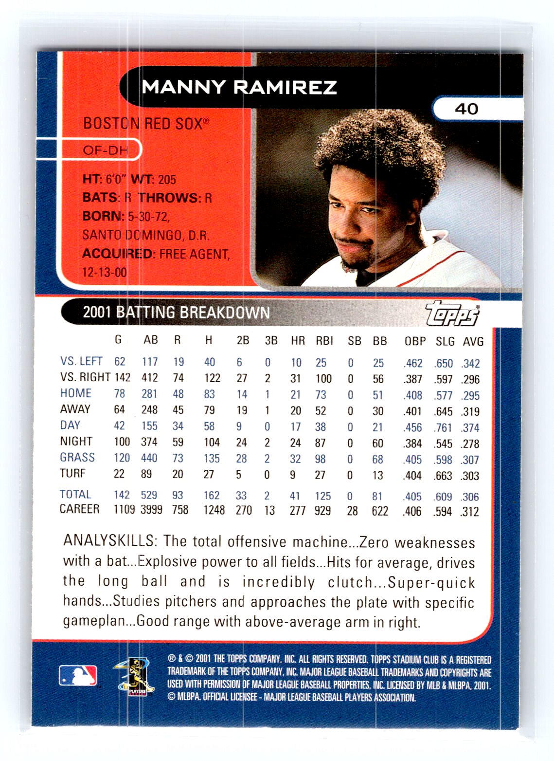 This is a really nice example of a 2002 Stadium Club #40 Manny Ramirez .